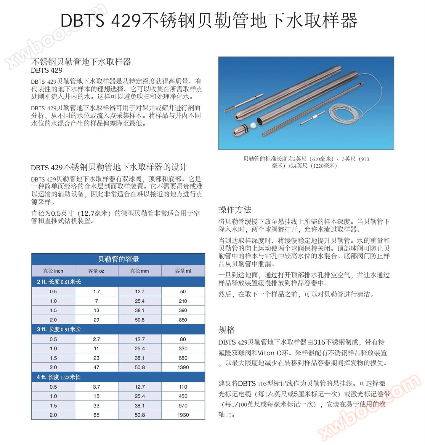 The DBTS 429 Beile tube groundwater sampler is an ideal choice for obtaining high-quality and representative groundwater samples from specific depths.