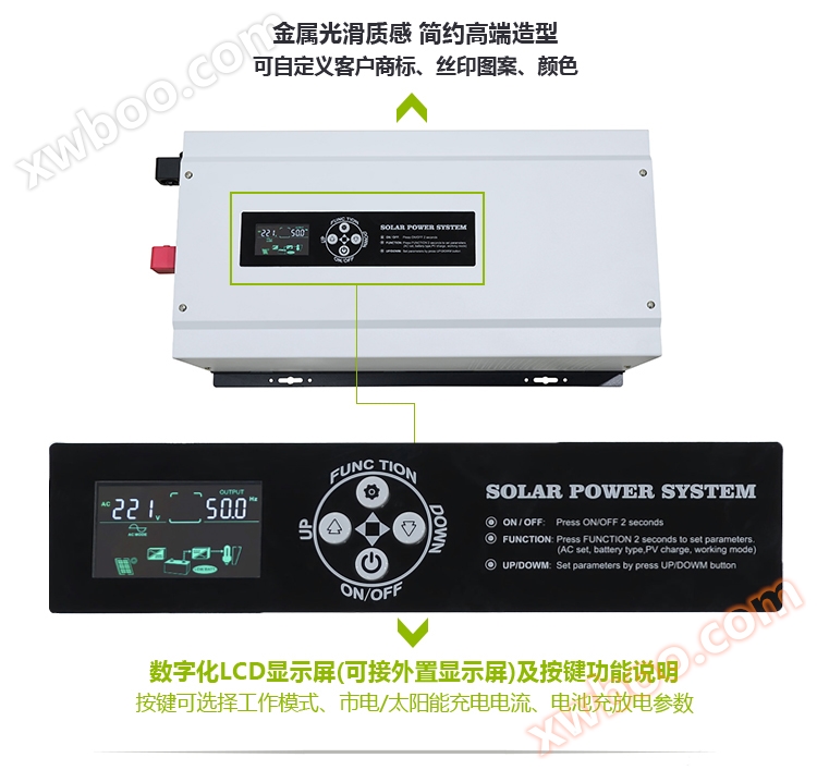 The inverter can be connected to the mains or generator,Equipped with battery and charging function,Adjustable charging current, more flexible user battery capacity configuration |