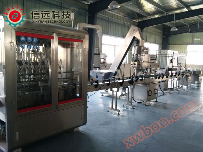 The CZ-4B weighing type fully automatic filling machine consists of a linearly arranged weighing platform (with roller conveyor), a chain push rod in and out bottle mechanism, fast and slow filling (with cylinder diving) mechanisms, a feeding transition box, weighing control instruments, and programmable control units. The liquid filling scale can meet the needs of automatic filling of various liquids, and can meet the filling of liquid without foam and with foam.