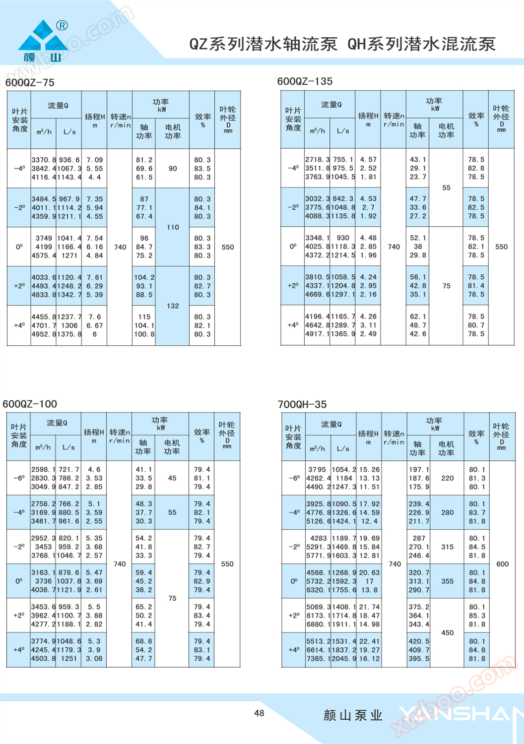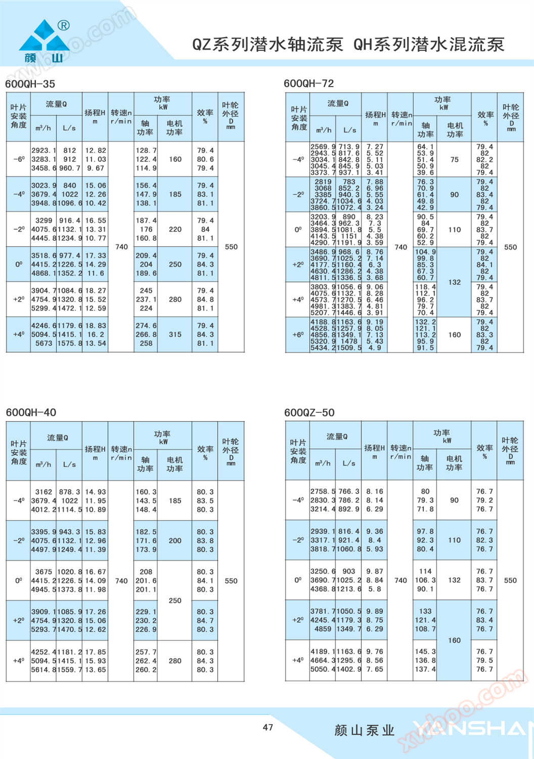 QHB series submersible mixed flow pump flow range: 360-6000m3/h,